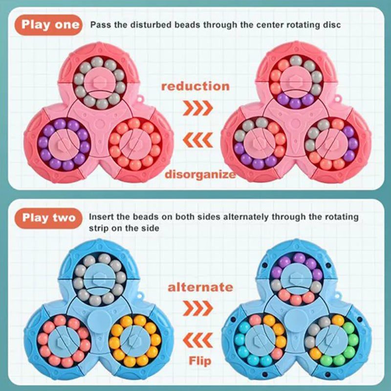 - DESIGN: Med lyse farger og stilige mønstre, vil barna dine elske disse nydelig designede dobbeltsidede sensoriske lekene. Dette er et to-i-ett avlastningsspill, som kan være en fidget spinner eller et puslespill. Midtdelen kan rotere 360 grader, og man må finne en måte å matche fargene på perlene riktig. Ønsker du en større utfordring, kan du blande og matche fargene på de doble lagene og seks sidene, og knytte perlene etter samme farge.