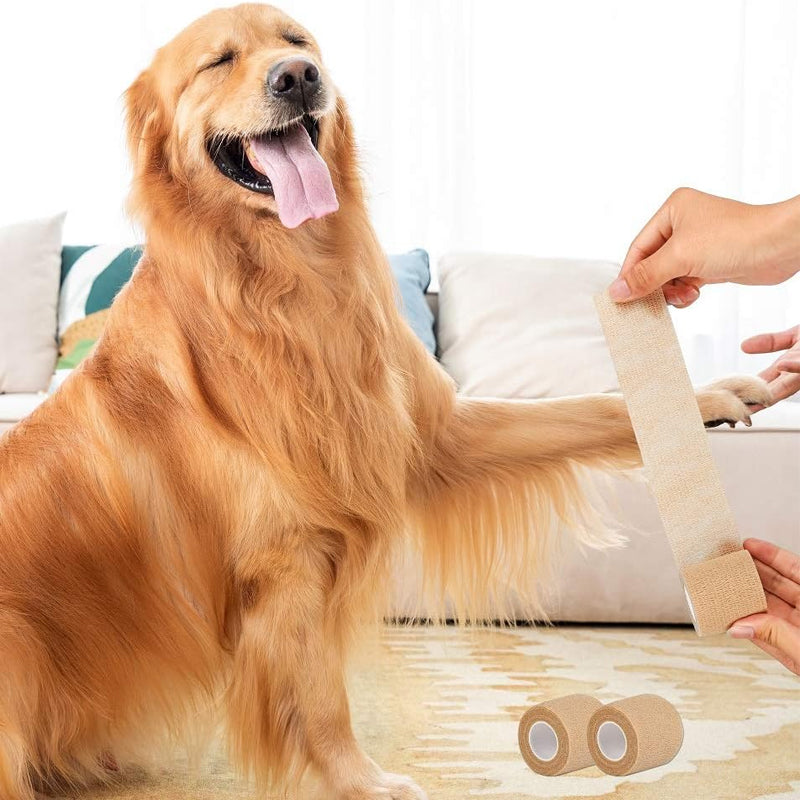 - Allsidig sammenklebende tape: Denne elastiske tapen gir mild kompresjon og holder bandasjer på plass. Den bidrar til å redusere hevelse og fremmer helbredelse. Ideell for behandling av forstuinger og belastninger; perfekt for trening og førstehjelpsbruk. Den er tilpasset for alle kroppsdeler, inkludert fingre, ankler, håndledd, albuer, knær og føtter. Den kan også brukes som bandasje til kjæledyr som hunder og hester.