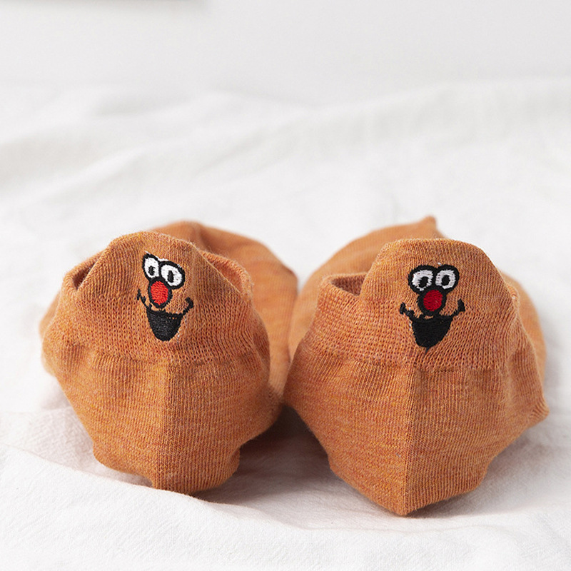 - Komfortable sokker med et søtt smilende ansikt brodert på baksiden