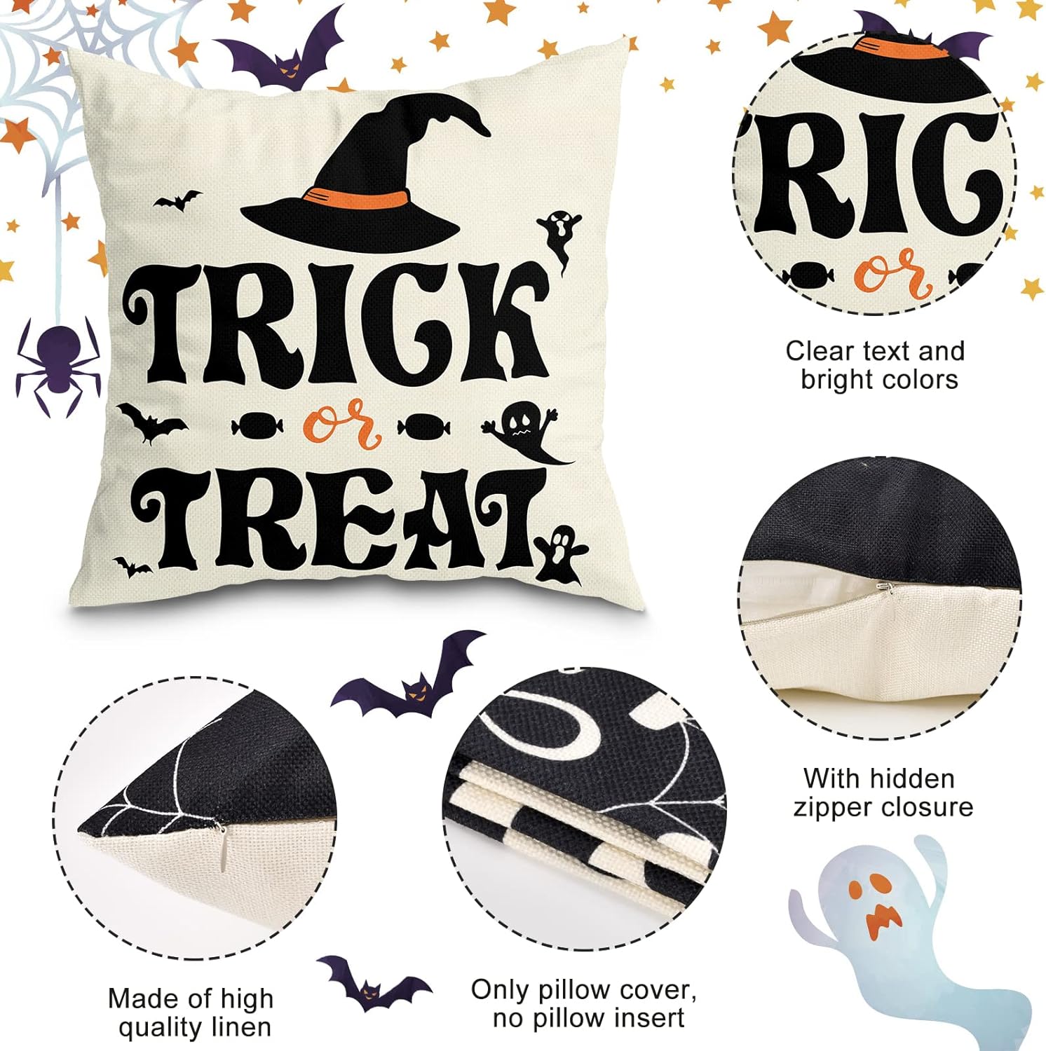 Lagdt av et pustende linblendingsmateriale, er disse putetrekkene myke og holdbare. Bare trekk dem over dine eksisterende puter for å instant forvandle rommet ditt til en skummel setting. De unike Halloween-tema designene er trykt på forsiden, mens baksiden forblir en naturlig linfarge for et klassisk utseende.