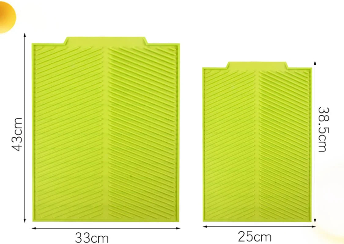 Med Silidro silikon tørkematte, holder kjøkkenet ditt strøken og tørt – alt uten noen form for anstrengelse! Denne allsidige matten fungerer utmerket som en støtte for tørkede tallerkener, varme kasseroller, eller som en sklisikker arbeidsflate.