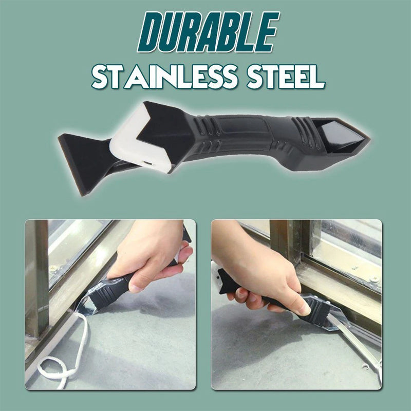 [Praktisk redskap for å påføre tetningsmidler]Dette skrapeverktøyet hjelper til med å tette sprekker og fjerne rester, noe som forbedrer både kvaliteten og utseendet på ulike overflater. Det fungerer som et hjørneskrapeverktøy, et klebrig blad for glass, restefjerner og søm-finishverktøy.