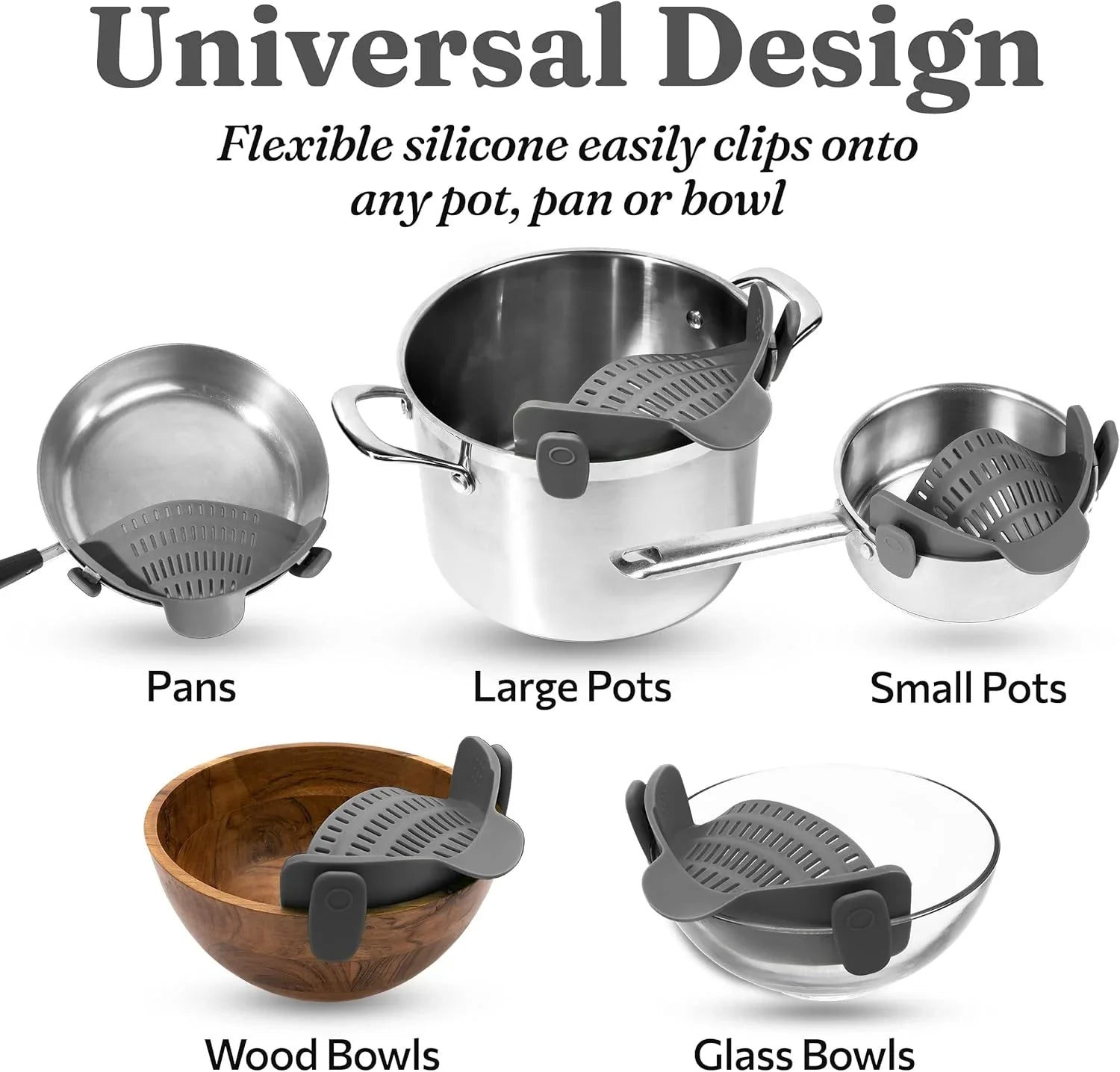 Tradisjonelle siler kan være uhåndterlige og vanskelig å håndtere. Silikon silen med klem gir den ideelle løsningen: Den sitter fast på gryten, reduserer sprut og gjør tømming utrolig enkelt. Dette hjelper til med å holde kjøkkenet rent og sparer deg for verdifull tid mens du lager mat!