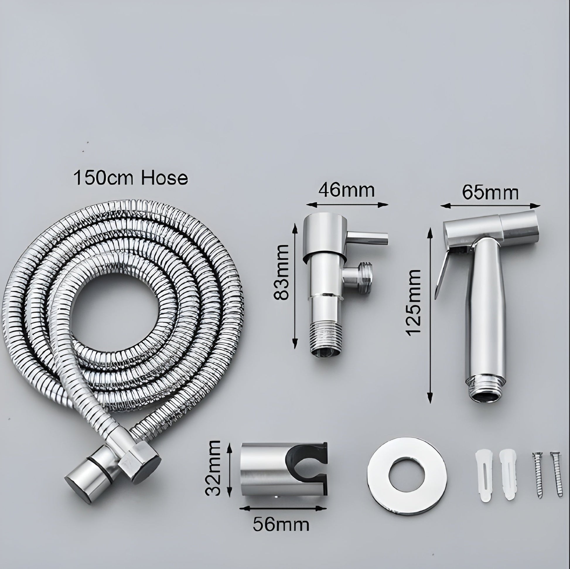 Den SilkStream Bidet Sprayer er den smarte og bærekraftige løsningen for å forbedre toalett-hygienen din. Laget av førsteklasses 304 rustfritt stål, tilbyr denne håndholdte bideten et rent, effektivt og moderne alternativ til toalettpapir. Med sitt stilige design glir den sømløst inn i hvilket som helst bad, samtidig som den gir en forfriskende og presis rengjøring hver gang.