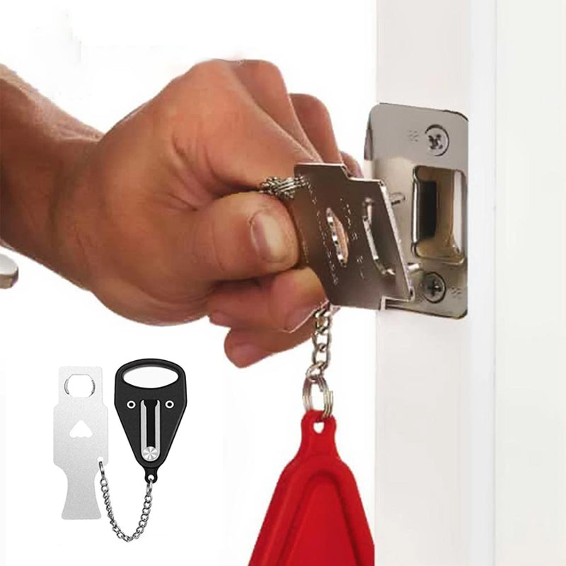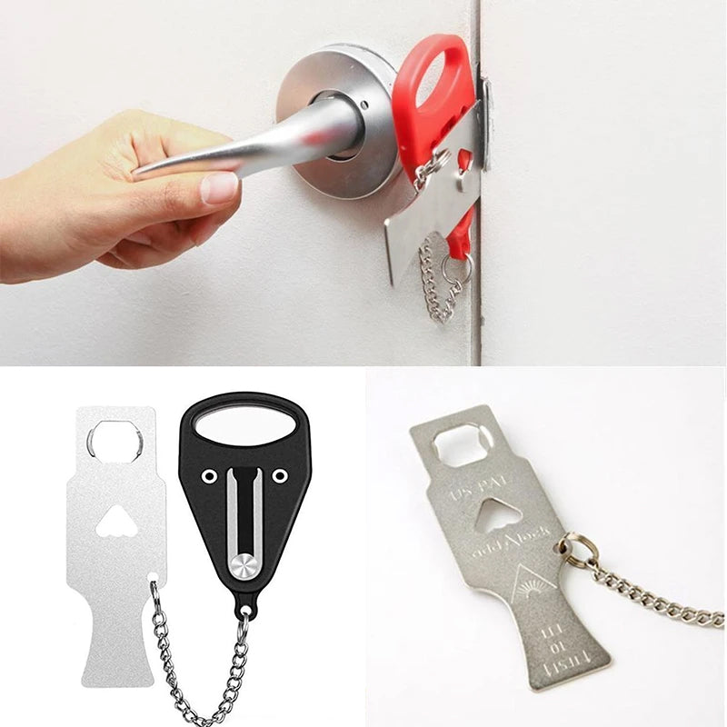 ENKEL INSTALLASJON - En bærbar dørlås som kan settes opp på sekunder uten verktøy. Laget av solid rustfritt stål og silikon for å sikre døren.