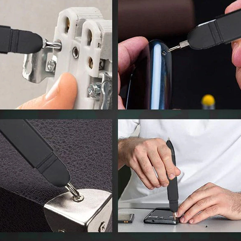 Kommer med syv vanlige skrutrekkerbiter for å håndtere vanlige vedlikeholdsoppgaver, som å skifte eller stramme skruer, og også i situasjoner hvor en skrutrekker er nødvendig.