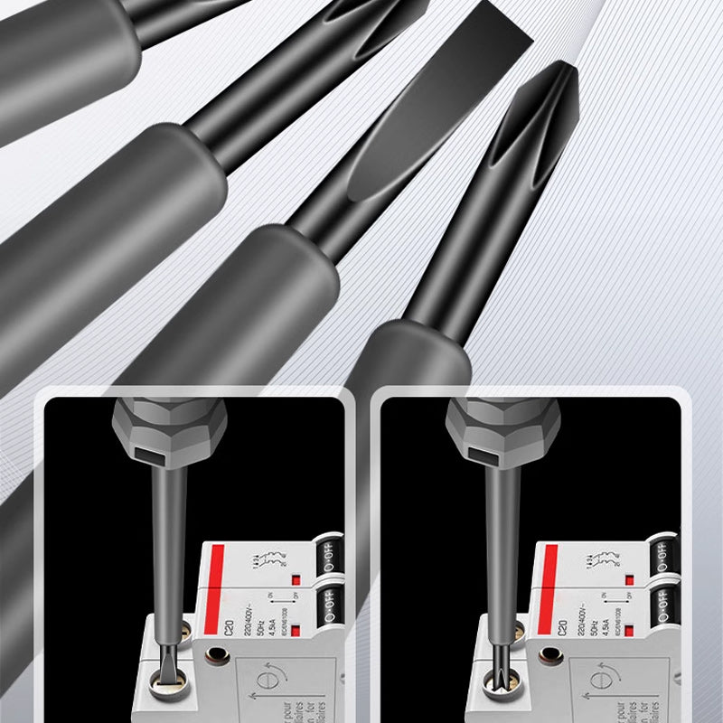 Ergonomisk skrutrekker: Håndtaket er nøye designet for å fremme bedre ergonomi og dreiemoment, noe som gjør det enklere og mer behagelig å skru under reparasjoner av husholdningsapparater.