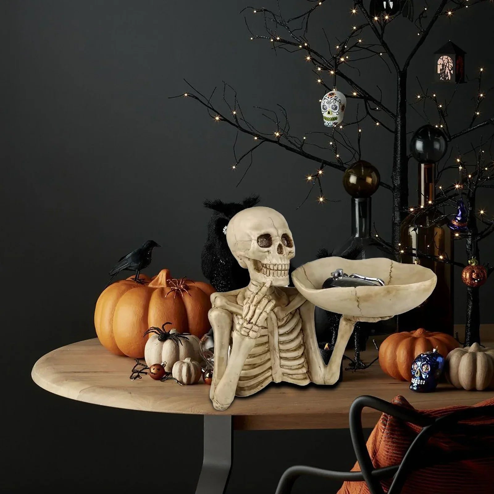 SkullServe Skull Tray introduserer et fengslende gotisk element til hjemmet ditt. Enten det brukes som et elegant dekorativt objekt til Halloween, et serveringsbrett for godbiter og frukt, eller en oppbevaringsplass for nøkler og andre små dagligdags nødvendigheter – dette vakkert utformede hodeskalledekorasjonen vil garantert tiltrekke oppmerksomhet. Et must for alle som elsker unik dekor og er på jakt etter et ekstraordinært samtalestykke i settingen sin.