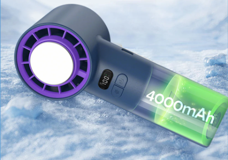 - Fleksibel bruk: Kan brukes som håndholdt vifte, skrivebordsvifte, eller monteres med den innebygde kroken.