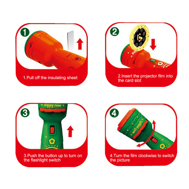 ăHĂžy Kvalitet & MultifunksjonalitetăDen er laget av hĂžykvalitets, miljĂžvennlige og ikke-toksiske ABS-materialer, med glatte kanter som er trygge for barnas smĂ„ hender. (AA-batterier fĂžlger ikke med) Den er energieffektiv med en on/off-knapp for lommelykten, som kan slĂ„s av nĂ„r den ikke er i bruk. Den fungerer ikke bare som prosjektor, men ogsĂ„ som lommelykt, egnet for bĂ„de innendĂžrs og utendĂžrs bruk. Den er en av de mest populĂŠre gavealternativene til jul, bursdag eller ferier for barn.