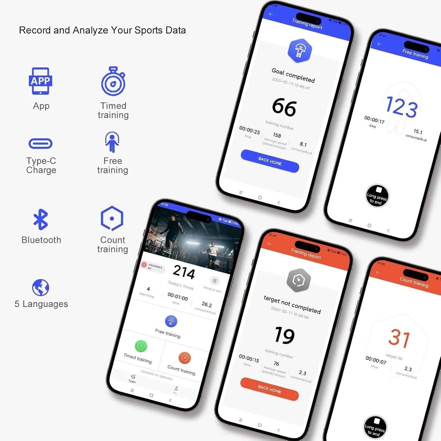 - Digital Sporingsdisplay – LCD-skjerm viser hopp, tid, kalorier og mer