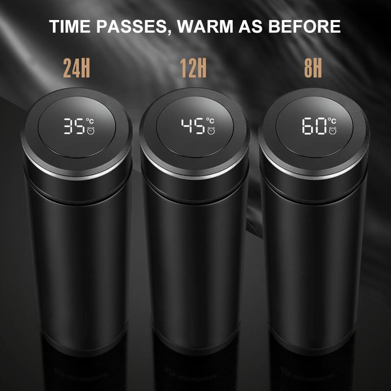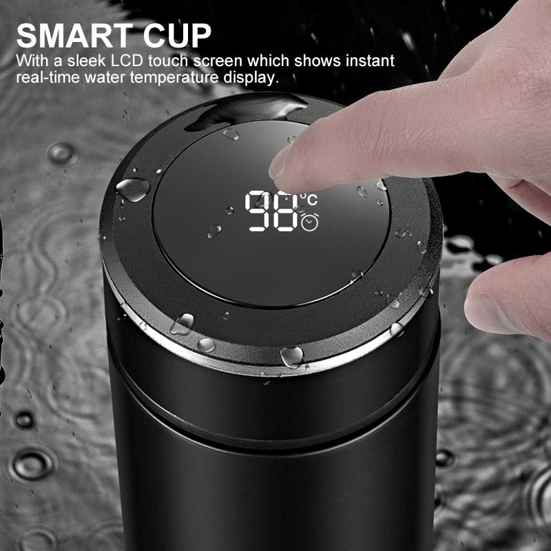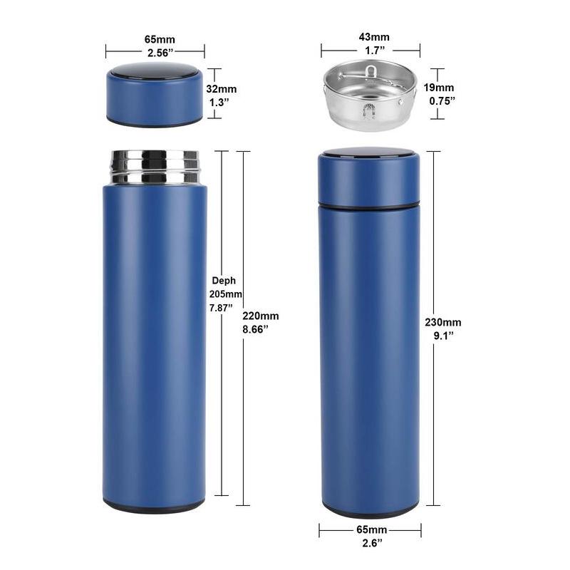 Denne smarte flasken har et elegant design i rustfritt stål med integrert temperaturskjerm og vannfilter. Med en slank LCD berøringsskjerm som viser umiddelbar sanntids vann temperaturvisning. Du kan drikke vannet som passer best for din foretrukne temperatur når som helst, hvor som helst.