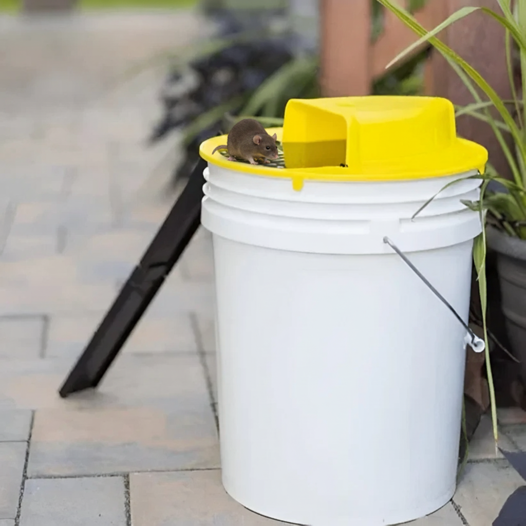 Dette produktet er en muse- og rottefelle som benytter en automatisk vippemekanisme for fangst av skadedyr. Fellen er designet for bruk sammen med en standard bøtte (ikke inkludert) som beholder. Designet er fritt for giftige kjemikalier eller farlige mekanismer, og er konstruert med tanke på sikkerhet rundt barn og kjæledyr.