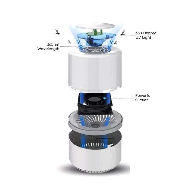 Ingen forstyrrende lyder eller summing. Enheten fungerer stille ved hjelp av LED UV-lys og luftstrøm for å fange insekter uten å forstyrre barn eller kjæledyr.