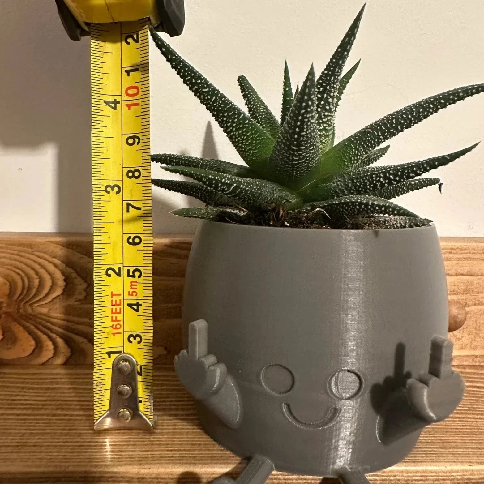 - Inkludert: Smilende blomsterpotte med hevede midtfingre ×1