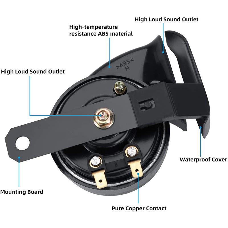 【Tydelig Lyd】 I motsetning til vanlige horn, gir sneglehornet en klar og unik lyd som effektivt varsler både fotgjengere og bilister.
