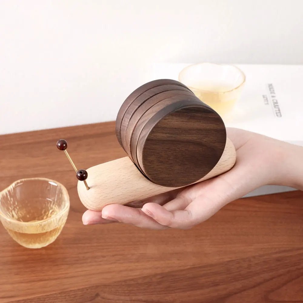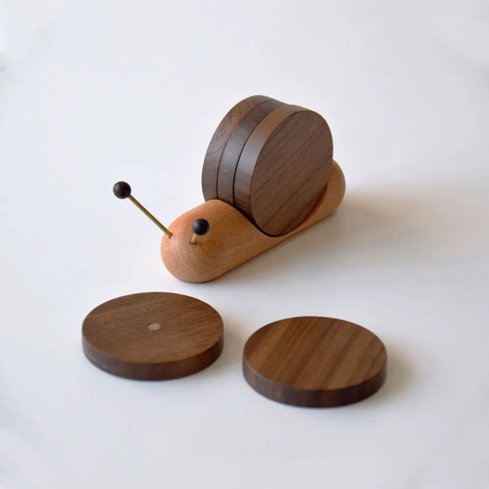 Vårt Snail Coaster Set forener kunstnerisk eleganse med praktisk funksjonalitet. Laget av solid tre, er det både slitesterkt og miljøvennlig, og gir et særegent preg til din innredning.