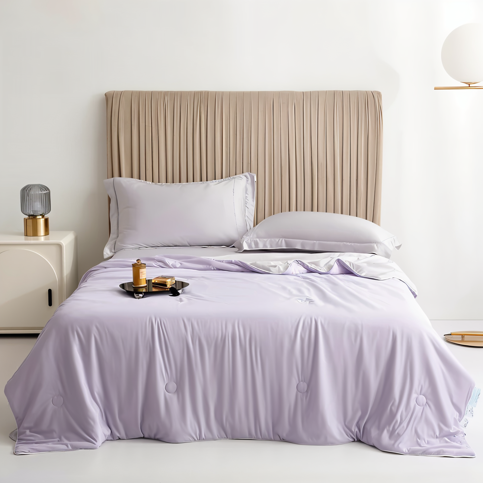 - Dobbeltsidig design: Kjølefiber for sommerbruk, myk bomull for hele året.