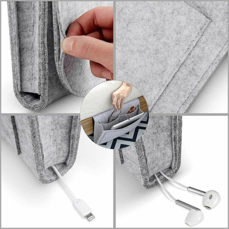 Polyester filt & tilpasset presisjonssying som gjÞr bedside-organiseren robust og holdbar. Denne bedside lagringscaddy har 1 stor lomme, 4 smÄ lommer. -