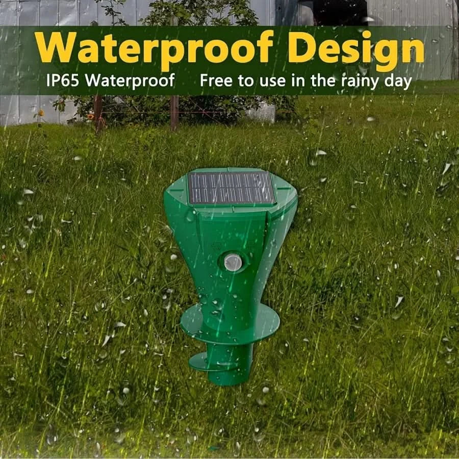 Beskytt hagen din med vår kraftige solcelledrevne moldreven. Dette banebrytende produktet benytter vibrasjoner for effektivt å holde molder og andre skadedyr borte, slik at hageområdet ditt forblir urørt.