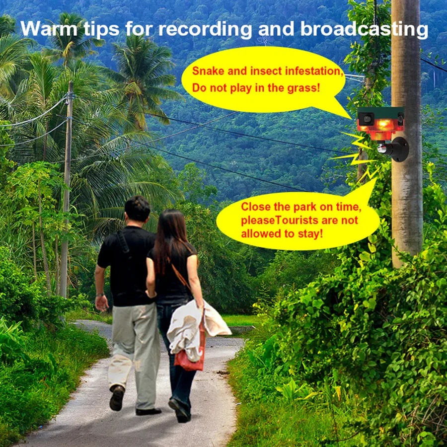 Utstyrt med en bevegelsessensor, kan den oppdage bevegelse fra 16 til 26 fot unna, noe som utløser en av 13 distinkte lydsignaler sammen med blinkende lys for å skremme bort dyr. Denne enheten fungerer automatisk på ethvert tidspunkt av døgnet, og gir konstant beskyttelse døgnet rundt. Det oppladbare batteriet, drevet av et innebygd solpanel, eliminerer behovet for en ekstern strømkilde.
