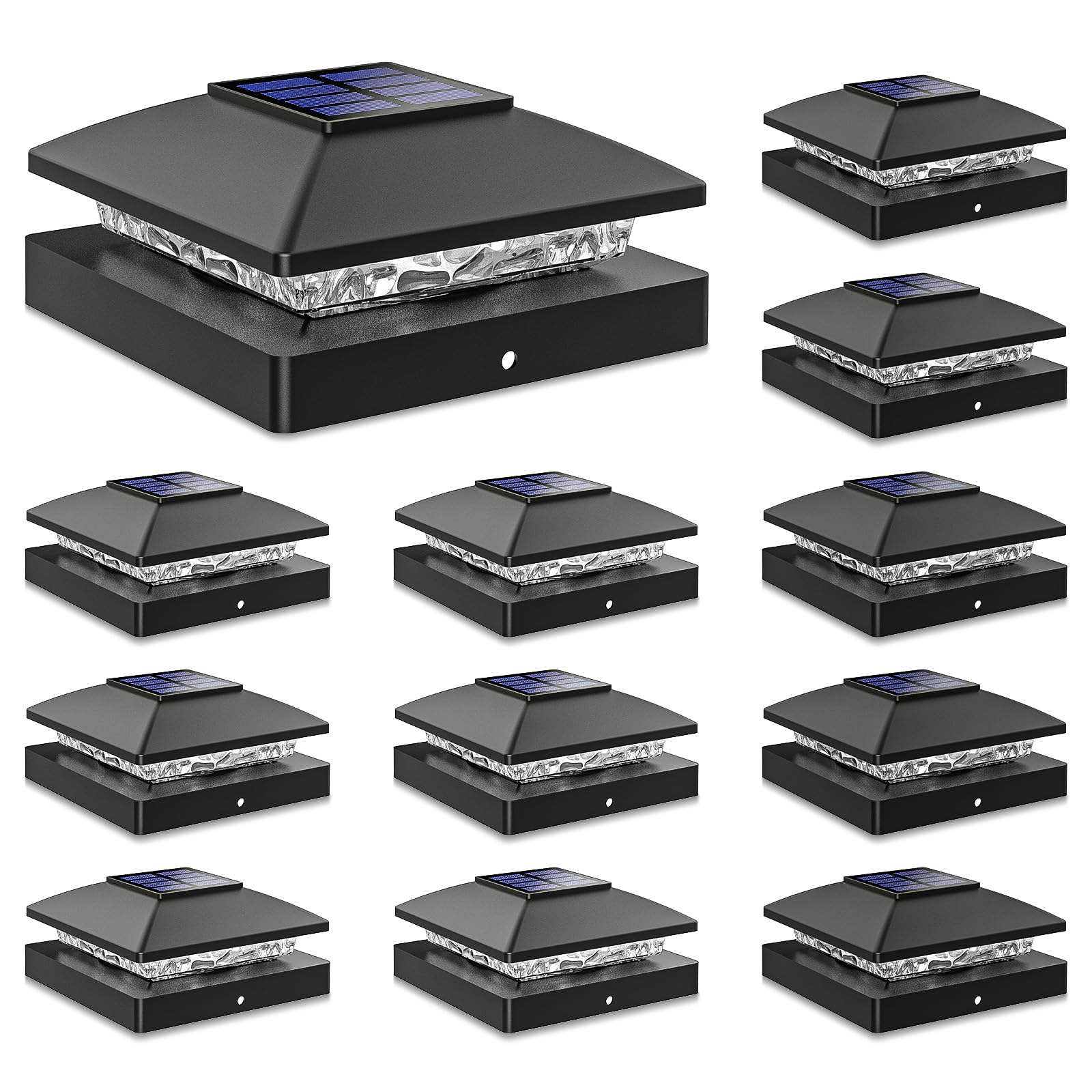 Norvo | Solar Post Cap Lights Utendørs 12Pakk, Svart Vanntett Solcelledrevet Dekke Hekklampe Passer 4X4 Tre/Vinyl Stolper, Lys Sterk War