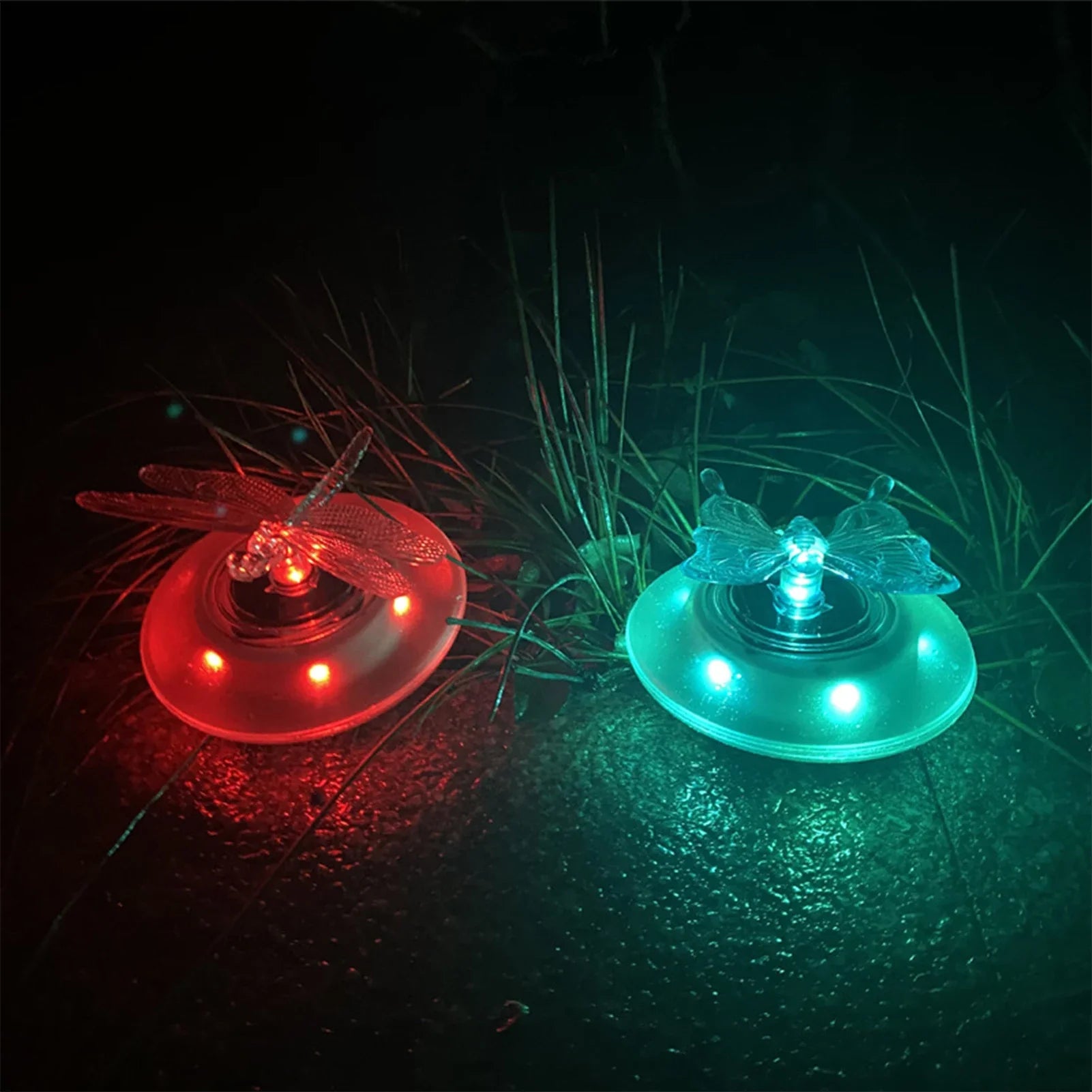 Solenergidrevet Damdekorasjon: Sommerfugl og Drageflue – LED Lys med Fargeforvandling til Hagen og Dammen Din