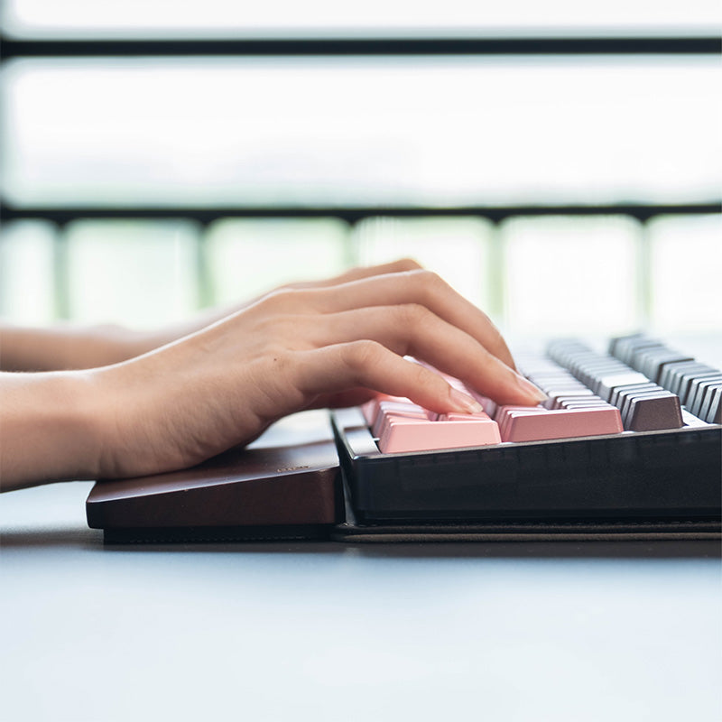 Det ergonomiske designet sikrer en utmerket støtte for håndleddene mens du skriver.