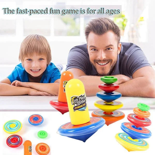 MANGFOLDIGE LEKEMULIGHETER - Du får fire topper som kan spins hver for seg eller stables til et tårn, noe som gir en større utfordring.
