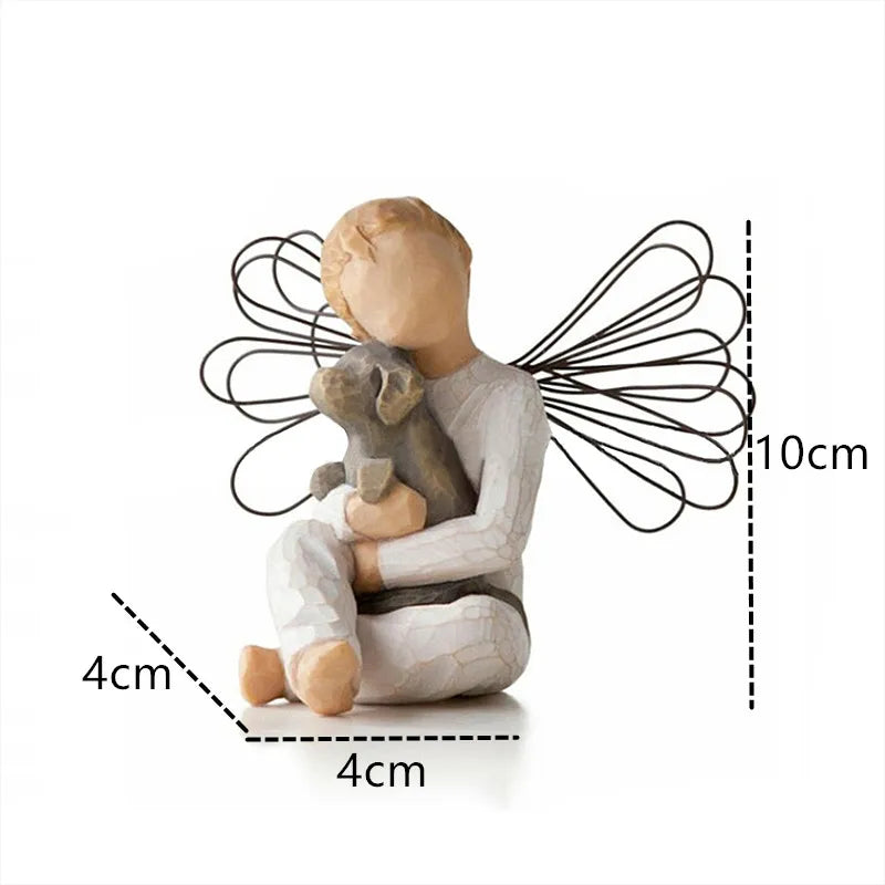 Norvo | Statuett laget av harpiks, mennesker, familiefigurer, skulptur, figurer for hjemmedekor, borddekorasjon, stue, engel, omfavnelse, hund, far, barn