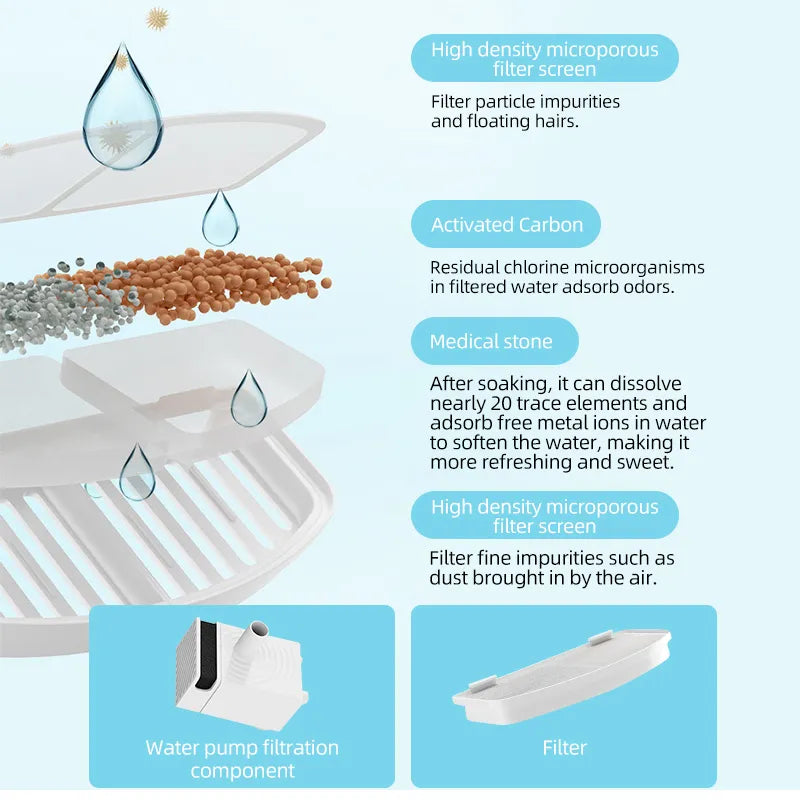 Sørg for at dine kjæledyr alltid har tilgang til friskt vann med denne praktiske dispenseren for husdyr. Denne smarte enheten gir en jevn strøm av rent vann, noe som fjerner behovet for hyppige påfyllinger. Med sitt stille design gjør den det mulig for kjæledyret ditt å drikke rolig, uten forstyrrende lyder, noe som gjør den ideell selv for de mest forsiktige dyrene.
