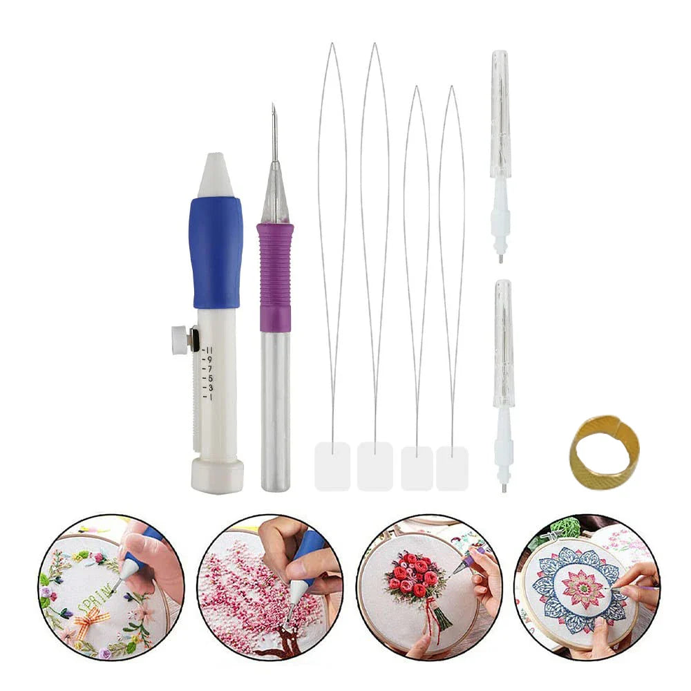 📌 Fullt sett for umiddelbar engasjement – Kommer med 2 punch needles, 4 trådere og 2 broderinåler.
