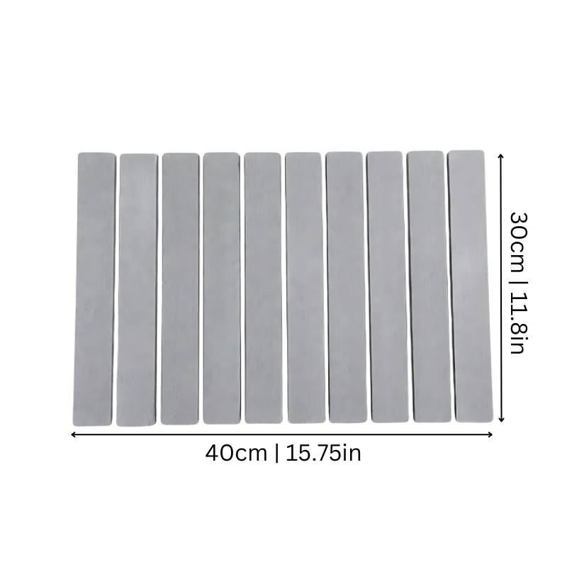 Designet for praktisk bruk, brettes denne matten enkelt sammen for problemfri lagring. Rull den sammen og legg den unna når den ikke er i bruk, og spar plass på kjøkkenet eller badet ditt. Til tross for sitt slanke og lette design, gir den kraftig absorpsjon, og sikrer at overflatene dine forblir tørre og fri for overskuddsvann.