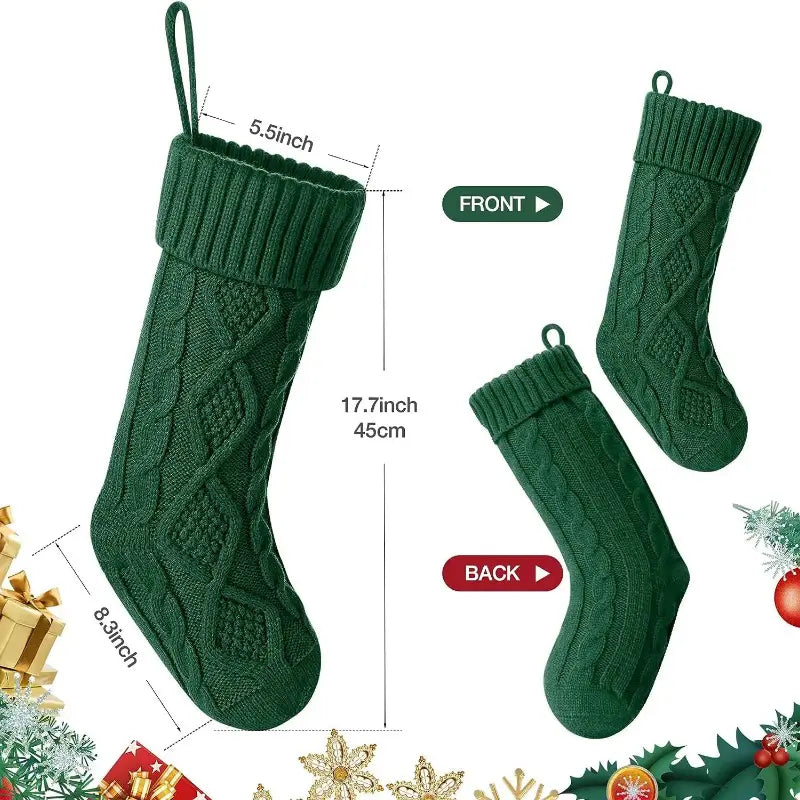 Bring feststemning til hjemmet ditt med julestrømper i bomull med kabel-strikk i rød, grønn og hvit—perfekt for familiedekor og julegavegiving.
