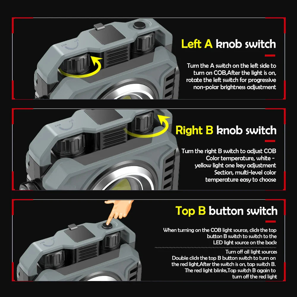 📌 Kraftfull & allsidig – 1500 lumen COB flomlys og 600 lumen TG3 spotlight gir optimal belysning, både på nært hold og på avstand.