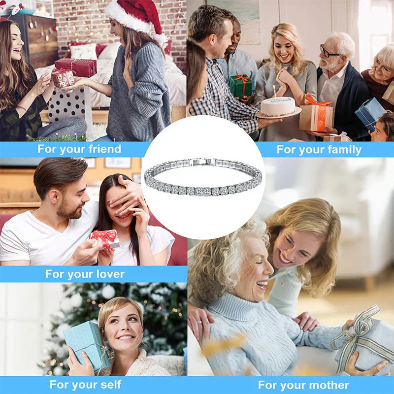 Skap et imponerende uttrykk med Tennisarmbåndet, designet for å utfylle både hverdagsklær og formelle antrekk. Dets allsidighet og strålende tilstedeværelse sikrer at du vil være i fokus uansett situasjon.
