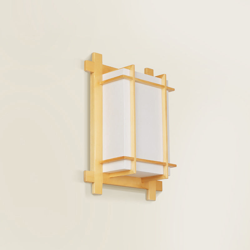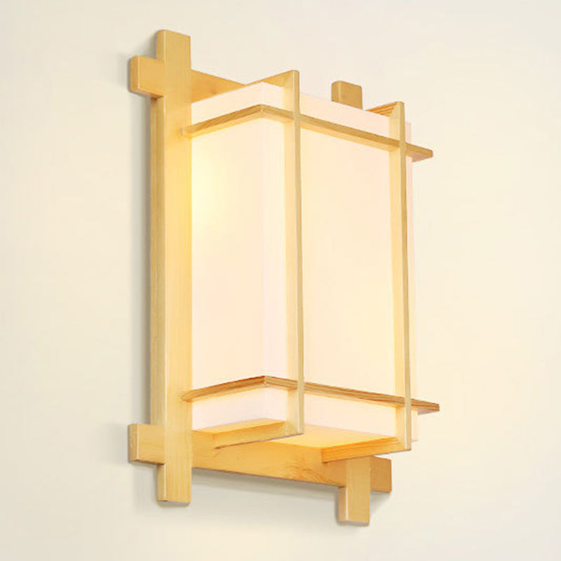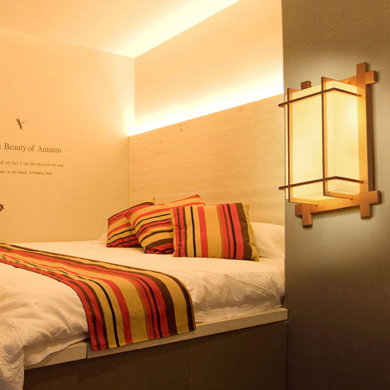 Norvo | Tradisjonell japansk rektangulær massiv tre ramme faux pergamentskjerm 2-lampe vegglampe for soverom