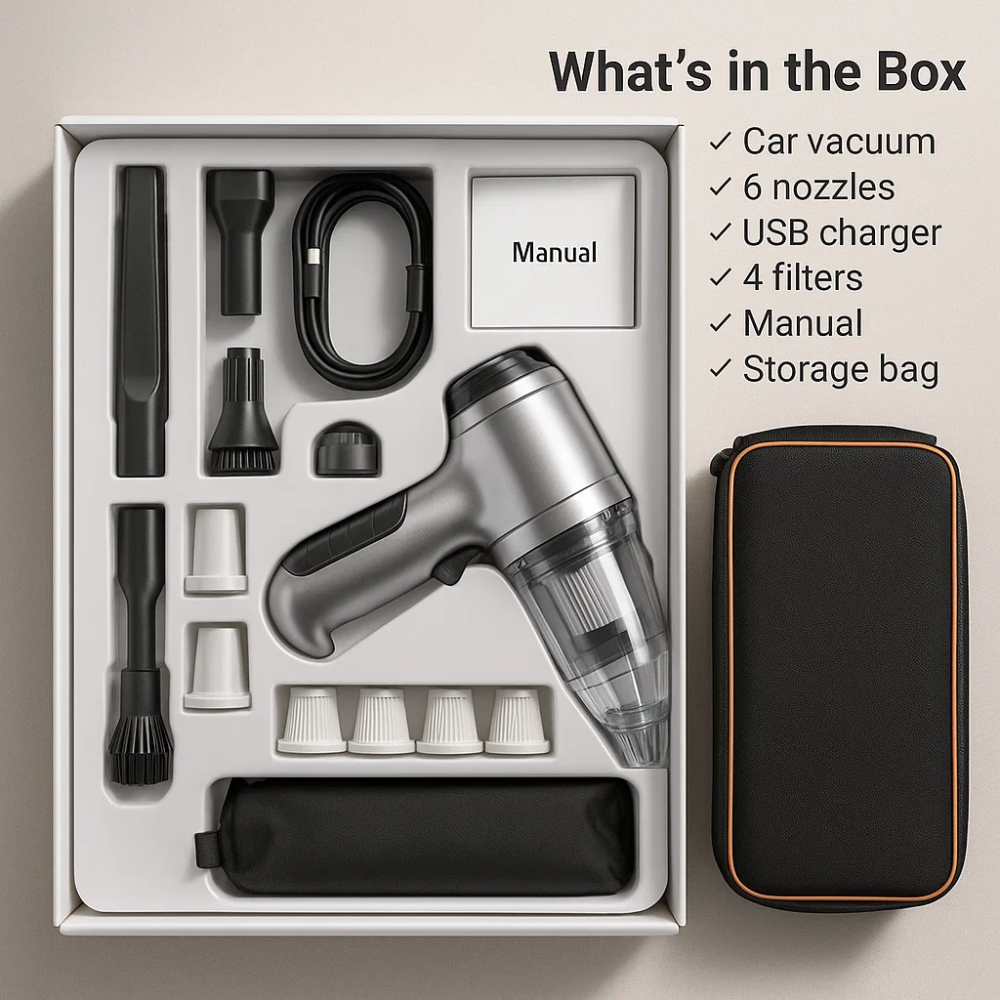 - 1 x Drahuløs bilstøvsuger Bærbar Sugeeffekt