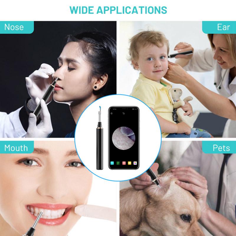 - Flerfunksjonelt trådløst øre-endoskop: Dette ørevask-endoskopet er ideelt for å inspisere ikke bare øregangen, men også trommehinna, munn, tannkjøtt, ører, nese, hals, nesekavitet, hårsekker på hodebunnen, og mer. Perfekt for klinikere, omsorgspersoner og personlig bruk.