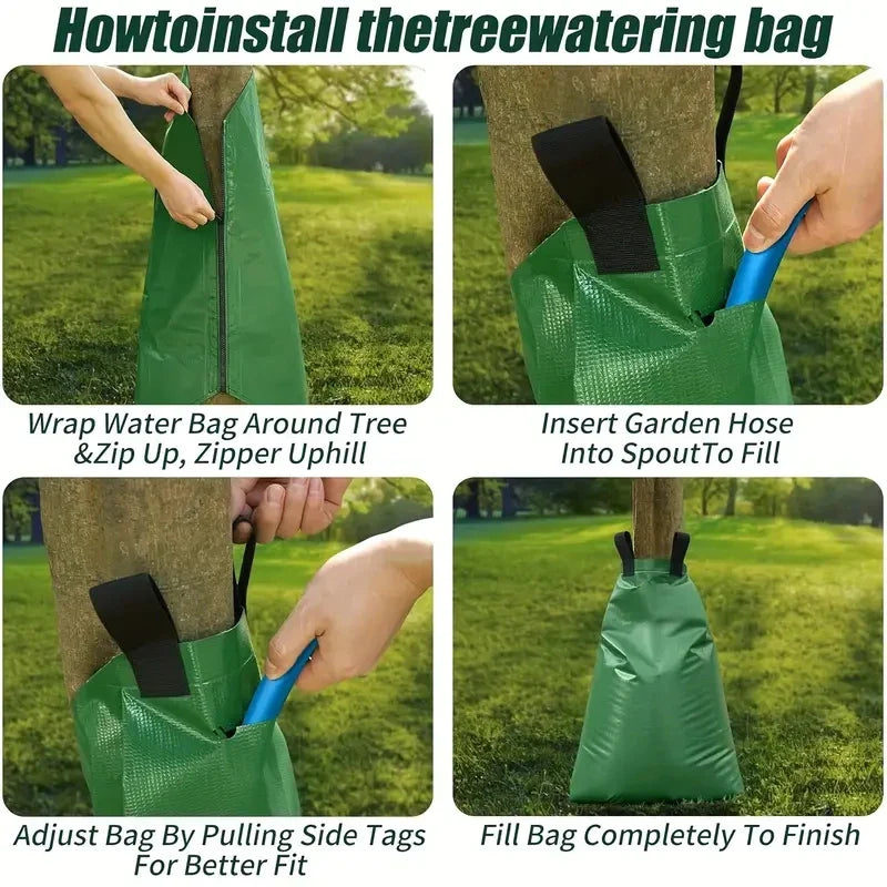 AquaTree 20 er den geniale løsningen for effektiv vanning av trær - spesielt gjennom tørre sommerdager eller når nye trær blir plantet. Med en kapasitet på 20 gallons (omtrent 75 liter), leverer denne gjenbrukbare vanningsposen vann sakte og jevnt til treet ditt over flere timer. Perfekt for hager, parker, eiendommer eller offentlige grøntarealer - alt uten behov for daglig vanning.