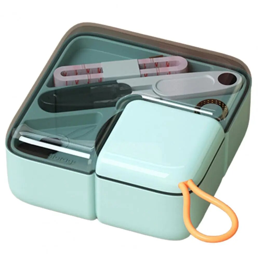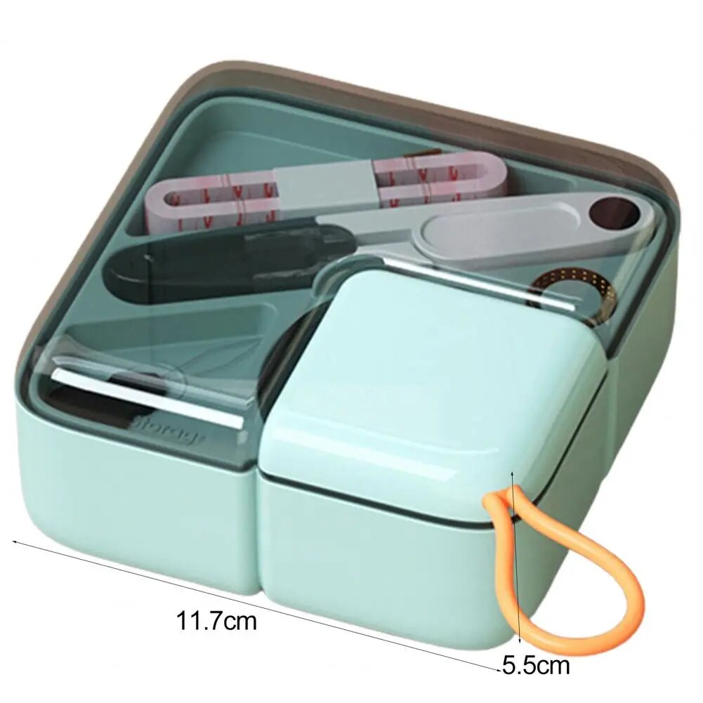 Denne syboksen har en dobbel-lagskonstruksjon som holder syverktøyene dine godt organisert, og den inneholder en midtskillete som gjør det enkelt å holde trådene adskilt fra verktøyene, noe som bidrar til orden i oppbevaringen.