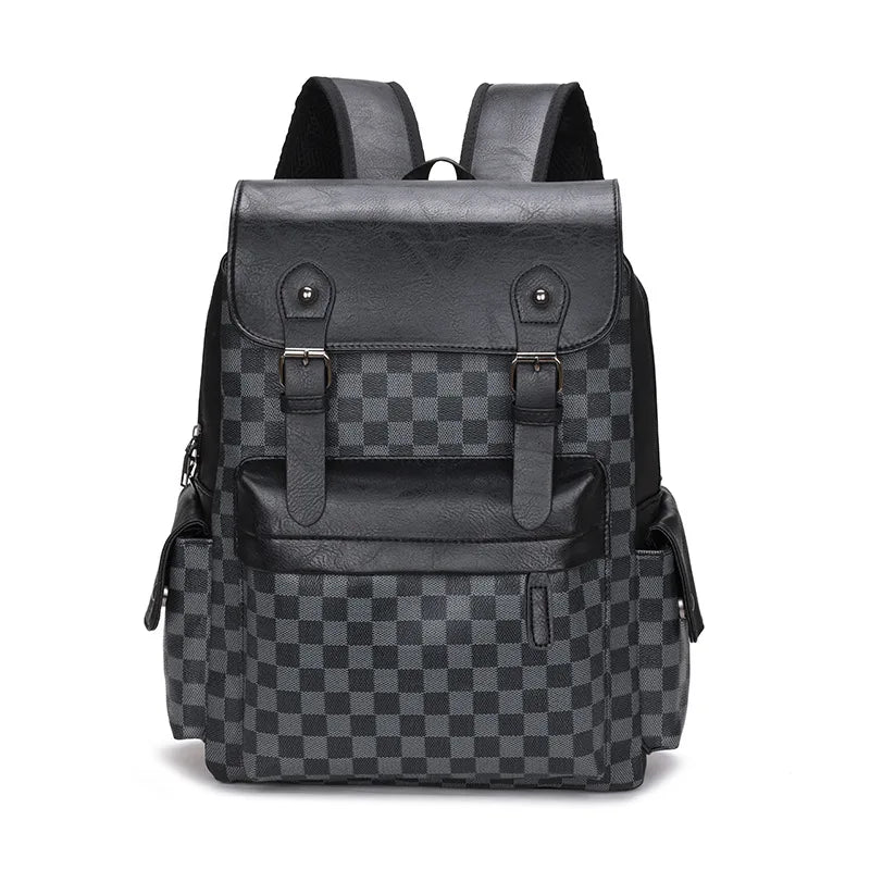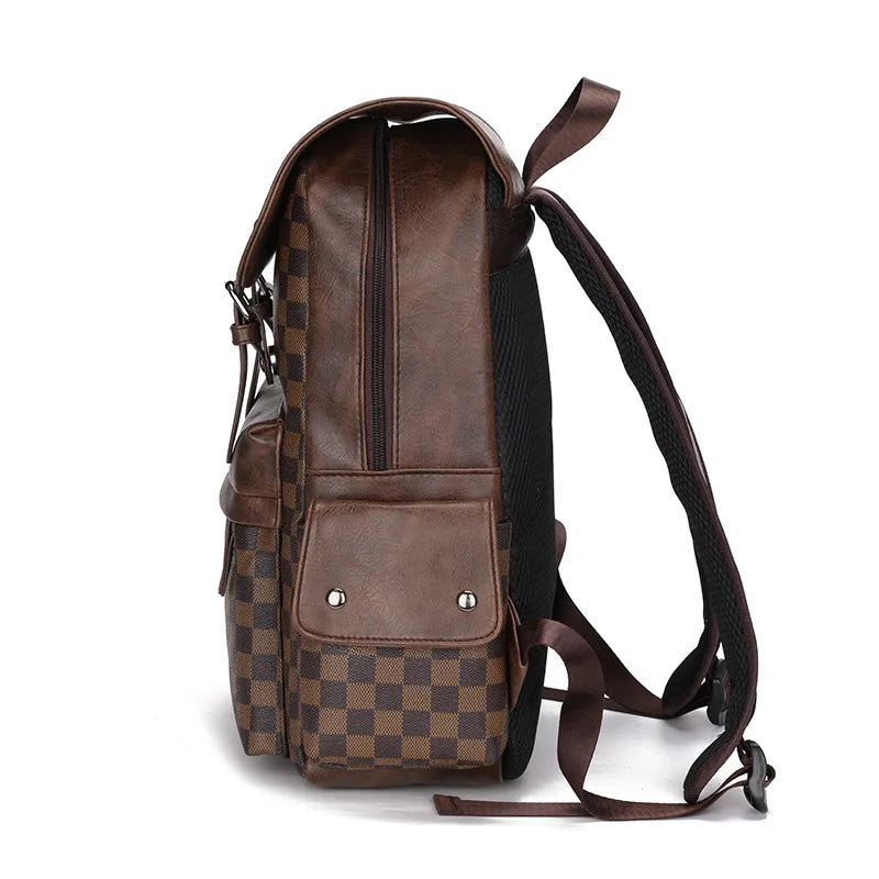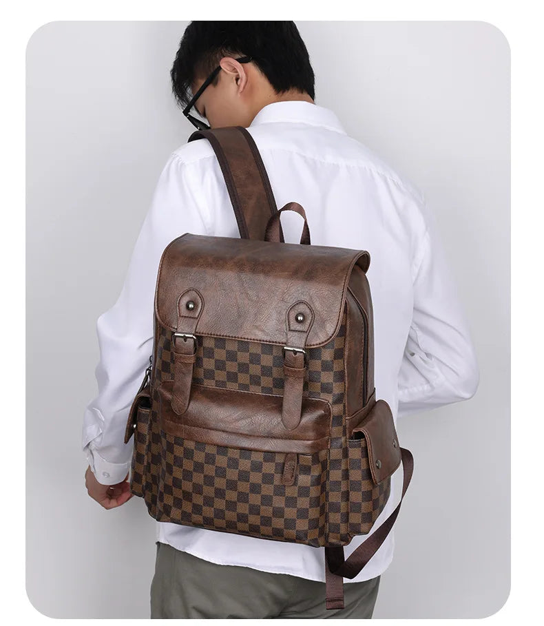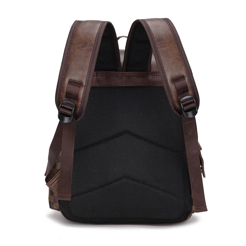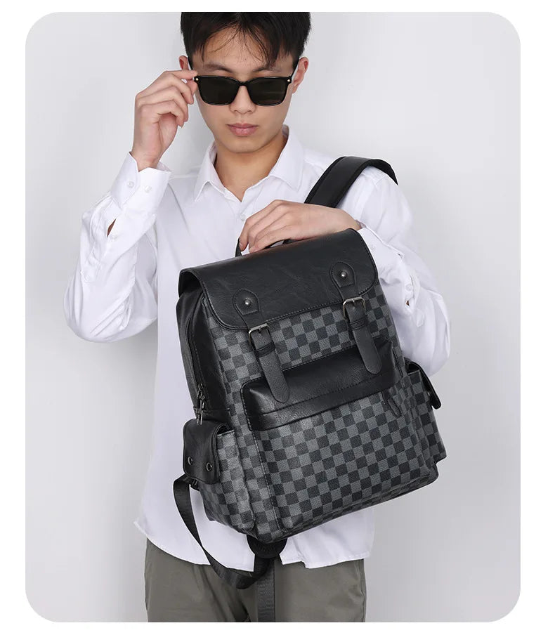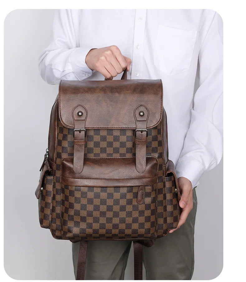 Norvo | Trendy Rute Business Allsidig Herre Ryggsekk Reise Stor Kapasitet Luksus Merke Design Ryggsekk Menn PU Lær Skole Ryggsekk