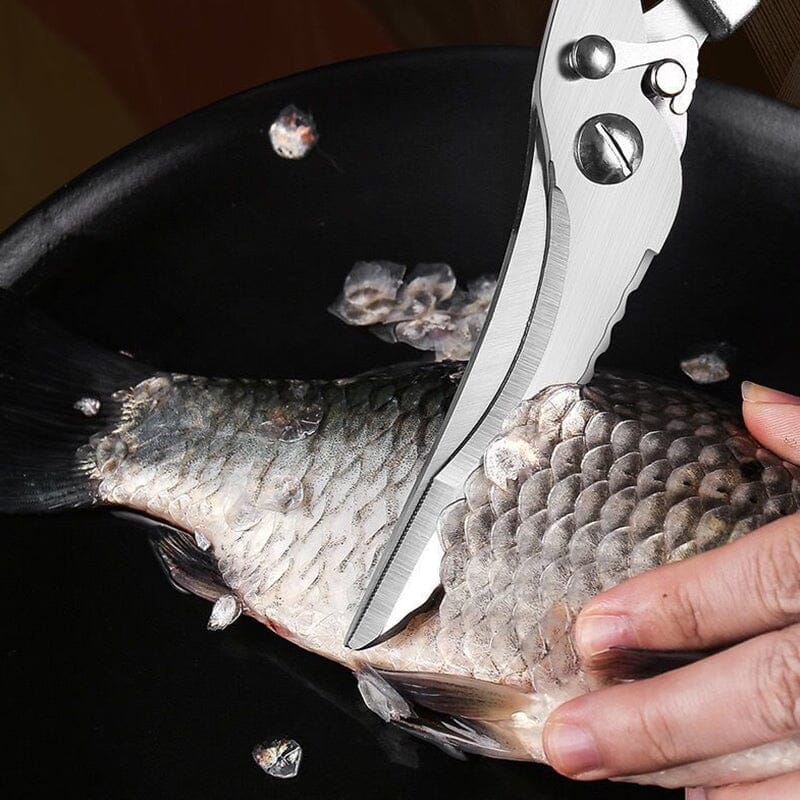 Allsidig og Presis Kjøkkensaks: Med nøye utformede, skarpe blader og robust konstruksjon, har disse saksene en spesialisert fiskeskalér og flaskeåpner, som gjør dem til et multifunksjonelt verktøy. Ideell for å kutte gjennom ben, fjørfe, kjøtt og grønnsaker, i tillegg til å gjøre flasker lett tilgjengelig og å skrape fiskeskinn.