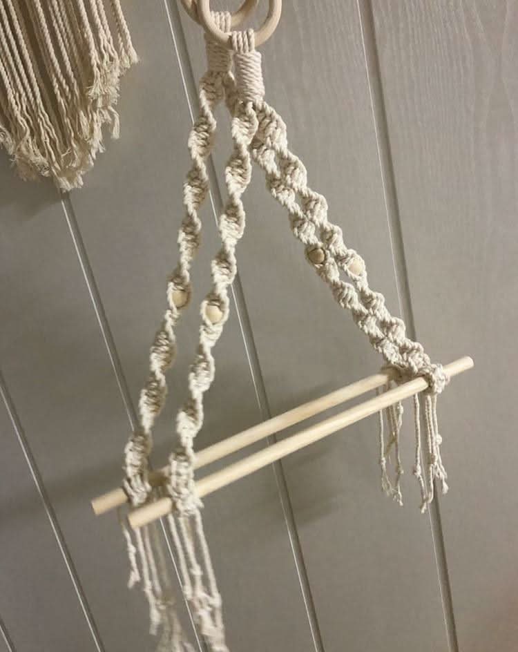 - Materiale: 100% bomullsmakramé med trepinner for ekstra stabilitet.