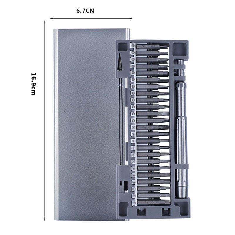 Det perfekte presisjonsskrutrekker-settet for håndverkeren er den ideelle løsningen for alle typer reparasjonsoppgaver. Dette settet er ideelt for de som liker å engasjere seg i gjør-det-selv-prosjekter og ønsker å sikre at arbeidet deres fremstår profesjonelt og stilfullt. Settet inneholder alt du trenger, inkludert utskiftbare hoder som sikrer enestående nøyaktighet og ytelse, slik at du kan fullføre oppgavene dine raskt og med stor presisjon. Det ergonomiske håndtaket bidrar også til å redusere tretthet i hånden ved krevende eller langvarige oppgaver.