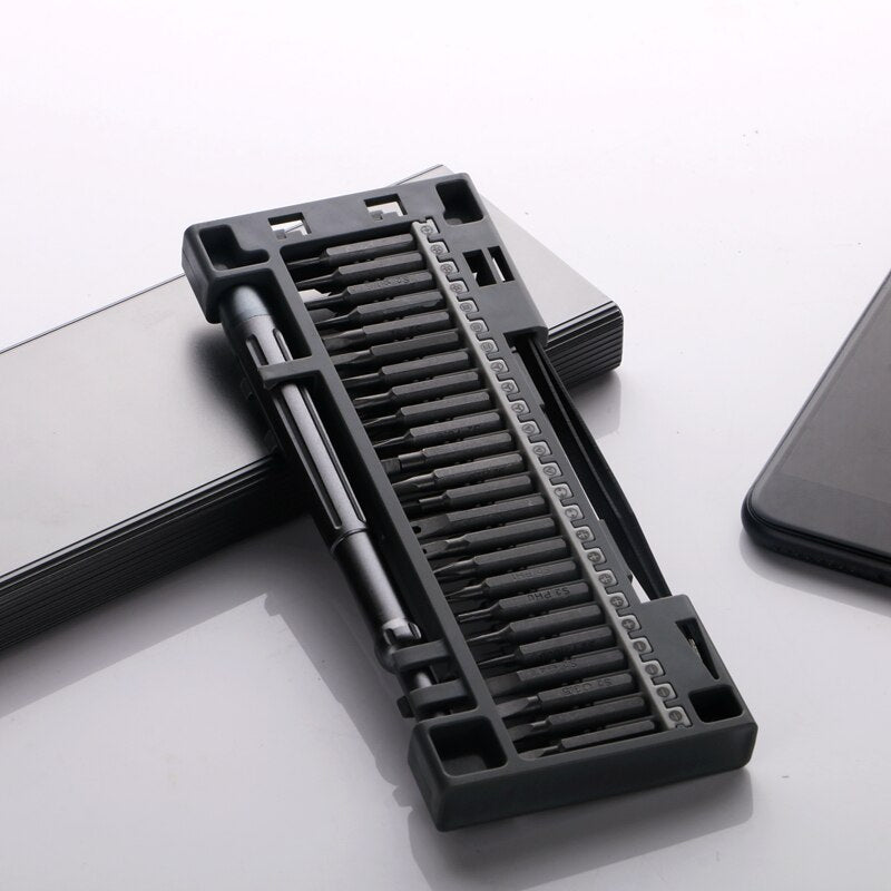 Den perfekte presisjonsskrutrekker-settet for håndverkeren er løsningen du trenger for alle dine reparasjonsoppgaver. Dette settene er ideelt for entusiasten av gjør-det-selv-prosjekter og sikrer at arbeidet ditt fremstår både profesjonelt og ryddig. Settet inkluderer alt nødvendig utstyr, med utskiftbare hoder som sikrer høy nøyaktighet og ytelse, slik at du kan fullføre oppgavene dine raskt og effektivt. Det ergonomiske håndtaket bidrar også til å minimere belastningen på hendene når du håndterer kompliserte eller tidkrevende oppgaver.