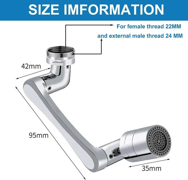 - 1 x 1080° Roterbar kranforlengelse (dobbelmodus vannstrøm)