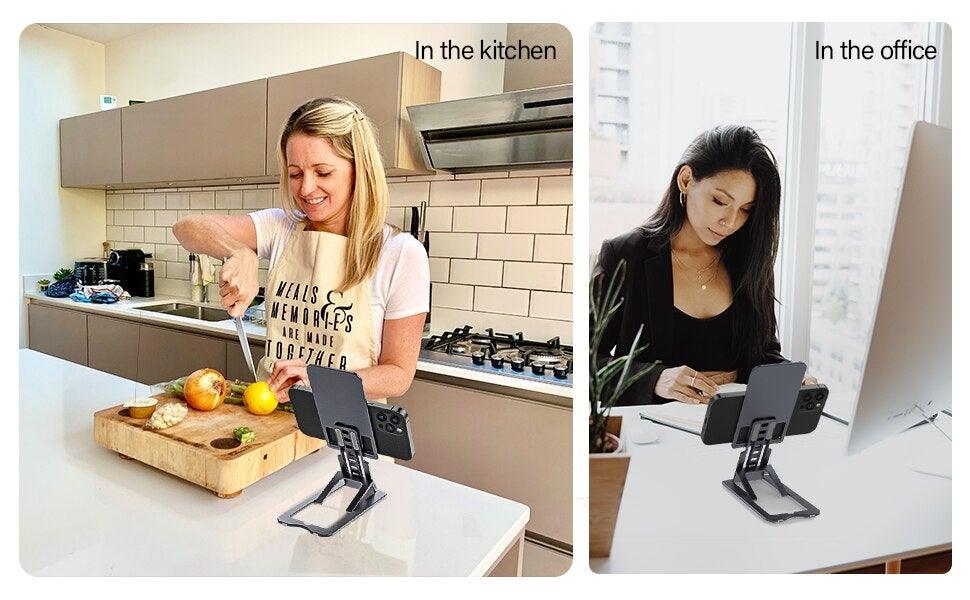 Støtten skiller seg ut med sitt elegante design og førsteklasses håndverkskvalitet. Den er robust, kompakt og enkel å oppbevare, noe som gir den både praktisk bruk og funksjonalitet. Høydejusteringen er optimal, og den gummierte bunnen samt fronten garanterer et sikkert grep uten glidning. Perfekt for både smarttelefonen og nettbrettet ditt. Allsidig å bruke og skånsom mot overflatene på enheten din.