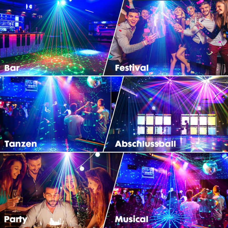 Transformere ethvert rom med denne USB-drevne laserlys, med levende RGB-LED-lys og dynamiske laser effekter. Perfekt for fester, bryllup, bursdager, barer, live show, eller hjemmeforvandlinger. Kontroller atmosfæren enkelt med den medfølgende fjernkontrollen og tilpassbare belysningsmodi.