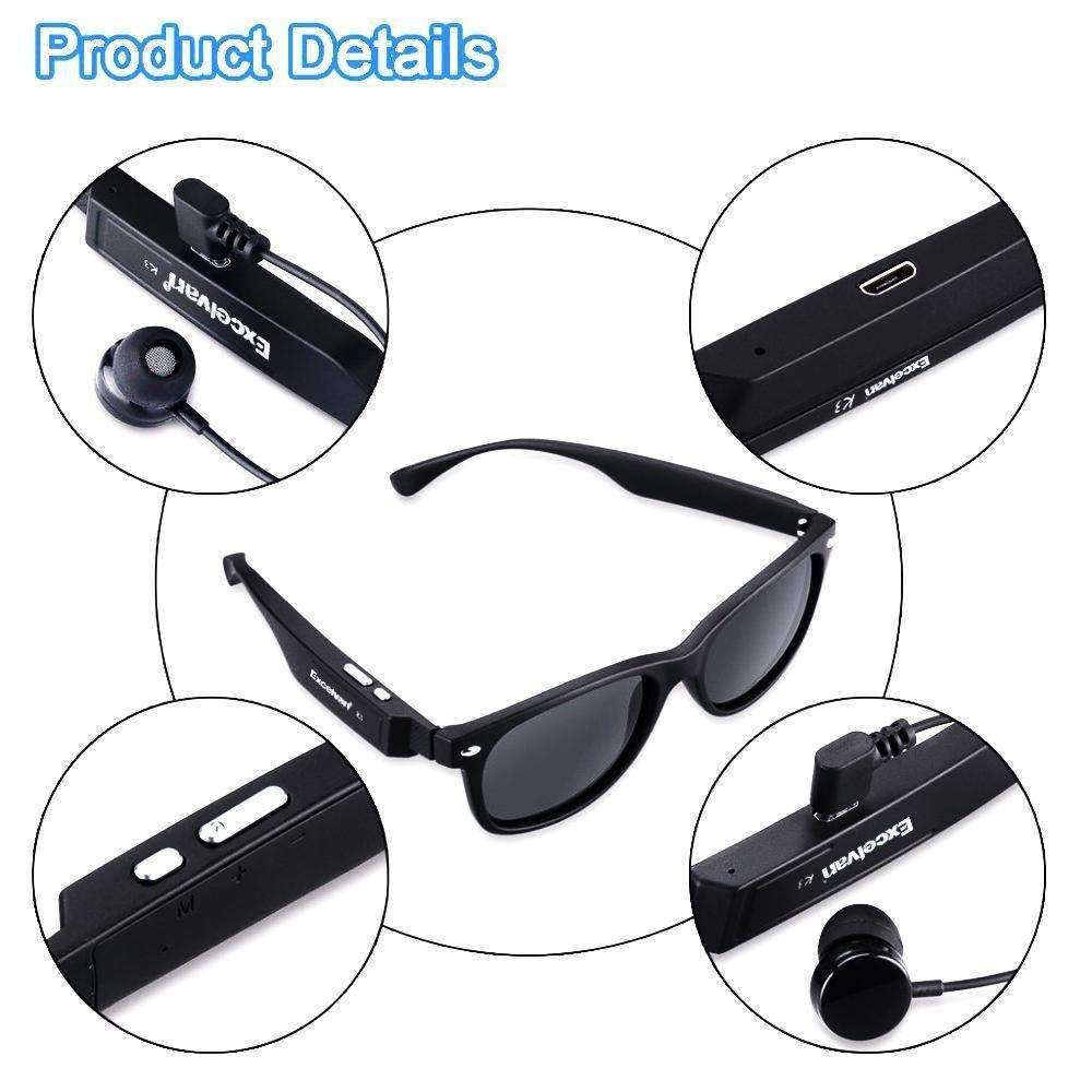 - Raskt tilgang. Solbrillene har raske knapper for VOL OP/NED, svare/avvise/legge på/spille/pause/forrige sang/neste sang.